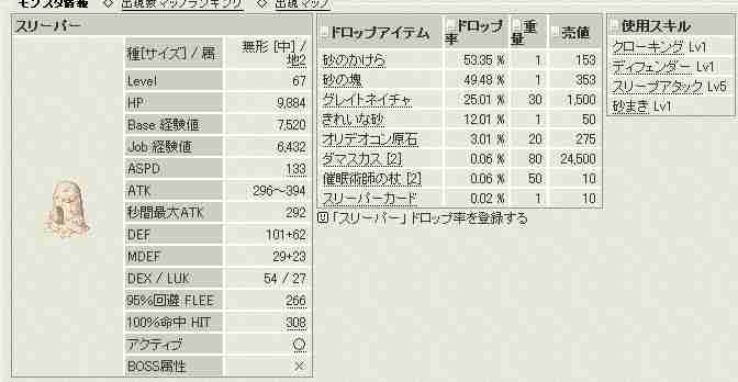 大体ODやスノウアー、SD3でマル・パサナC狙い、ノーグ1F、迷宮3Fなどに通ってる人が多いらしい